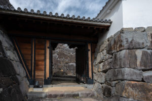 Kajikuruwamon Gate is a “Magutamon” gate designed to prevent enemy invasion, and is designed so that it is impossible to go straight ahead after passing through the gate. It is a highly defensive and practical castle gate.