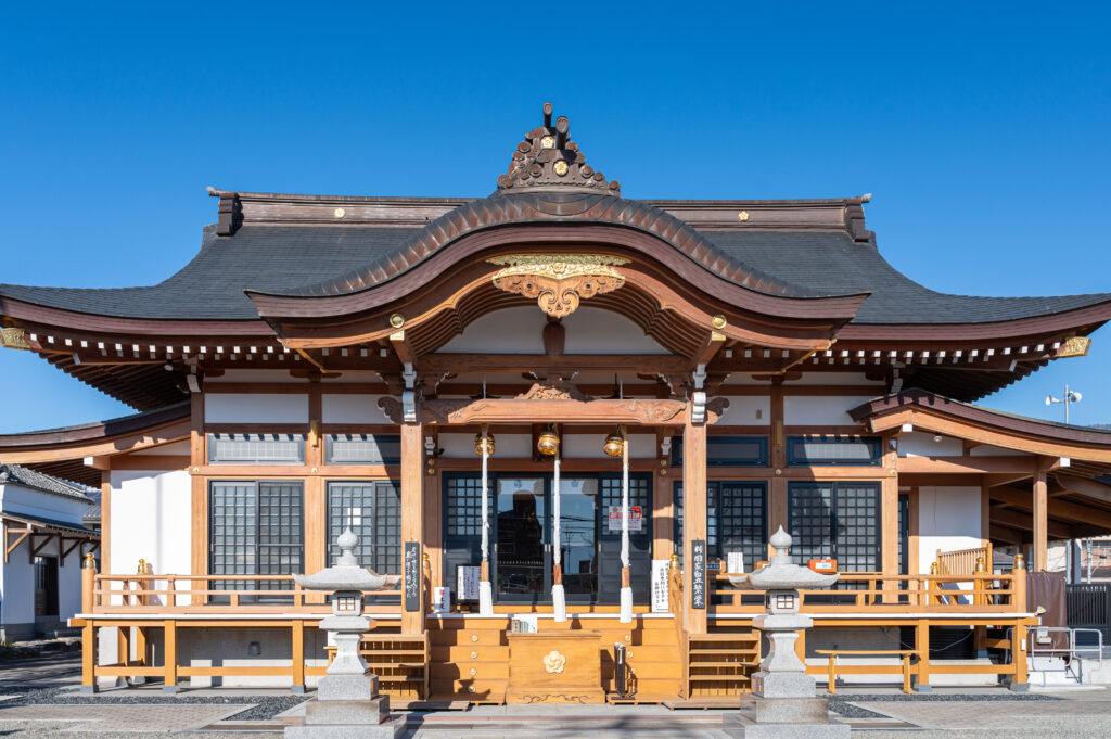 甲斐善光寺は、武田信玄公が川中島の合戦の際に信濃善光寺の焼失を恐れ、本尊を移して創建したと伝わるお寺です。厄除けや開運のご利益で知られ、新しい年の始まりに訪れるのにぴったりです。本堂は国の重要文化財に指定されており、その歴史の重みを感じさせます。また、金堂中陣天井には巨大な龍が二匹描かれており、手を叩くと天井に音が反響する「鳴き龍」として、不思議な体験ができます。初詣では、この鳴き龍の響きとともに、心身の清めと厄除けを願うことができます。