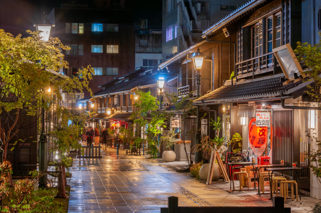 一方、甲府駅南口エリアにある「小江戸甲府 花小路」は、かつて宿場町として栄えた時代の面影が残る街並みが特徴です。石畳の道と格子戸の建物が連なる風景は趣があり、昼間はレトロな雰囲気の中で写真撮影やお店巡りが楽しめます。夜になると提灯の明かりが灯り、昼間とはまた違う幻想的な雰囲気になります。地元の人々に親しまれる居酒屋やダイニングも多く、ゆっくりと甲府の夜を楽しむのにもぴったりのスポットです。