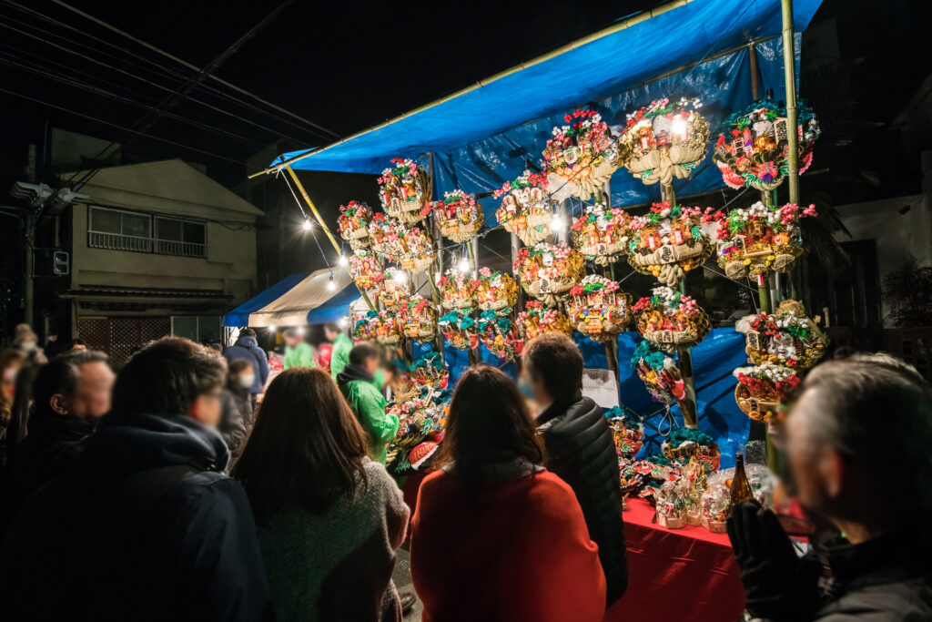 時代の流れとともに、お祭りの姿も少しずつ変わってきました。もともとは神社での厳かな神事が中心でしたが、いつしか神社の周辺や通りにたくさんの露店が並ぶようになりました。だるまや熊手といった縁起物を求める人や、家族や友人と連れ立ってそぞろ歩きを楽しむ人々で賑わう、現在の温かい雰囲気が生まれ、今に受け継がれています。