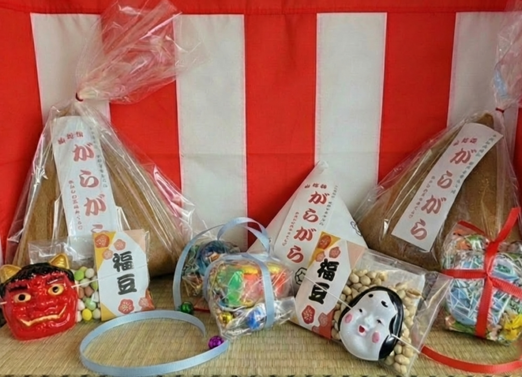 大神宮祭の名物として親しまれているのが、「がらがら」と呼ばれる伝統菓子です。小麦粉を焼いて作った、手のひらよりも大きな三角形のお菓子の中には、小さなおもちゃや鈴が入っており、振ると音が鳴ることから「がらがら」と名付けられました。その鈴の音が、厄を払い邪気を遠ざけると伝えられ、節分の縁起物として古くから親しまれています。