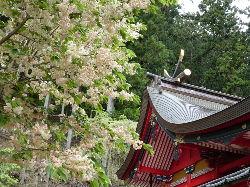 昇仙峡の奥深くに佇む金櫻神社は、金運アップのパワースポットとして知られています。ご神木の「鬱金の櫻(うこんのさくら)」は、淡い黄緑色の花を咲かせる珍しい桜で、例年4月下旬から5月上旬に見頃を迎えます。
