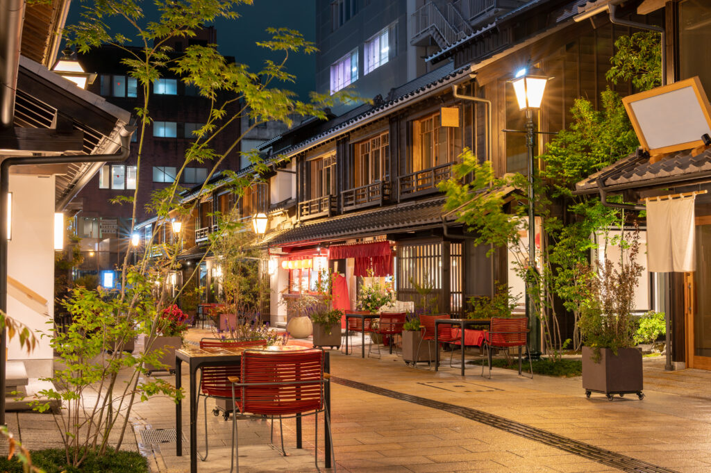 This charming area recreates the lively atmosphere of Kofu during its heyday as “Little Edo.” Traditional townhouses line the cobblestone streets, and at night, lanterns light up the area, creating a magical ambiance. It’s enjoyable just to stroll around, but there are also many unique restaurants, making it a great place to relax and enjoy a meal or drinks after the Shonoki Festival.