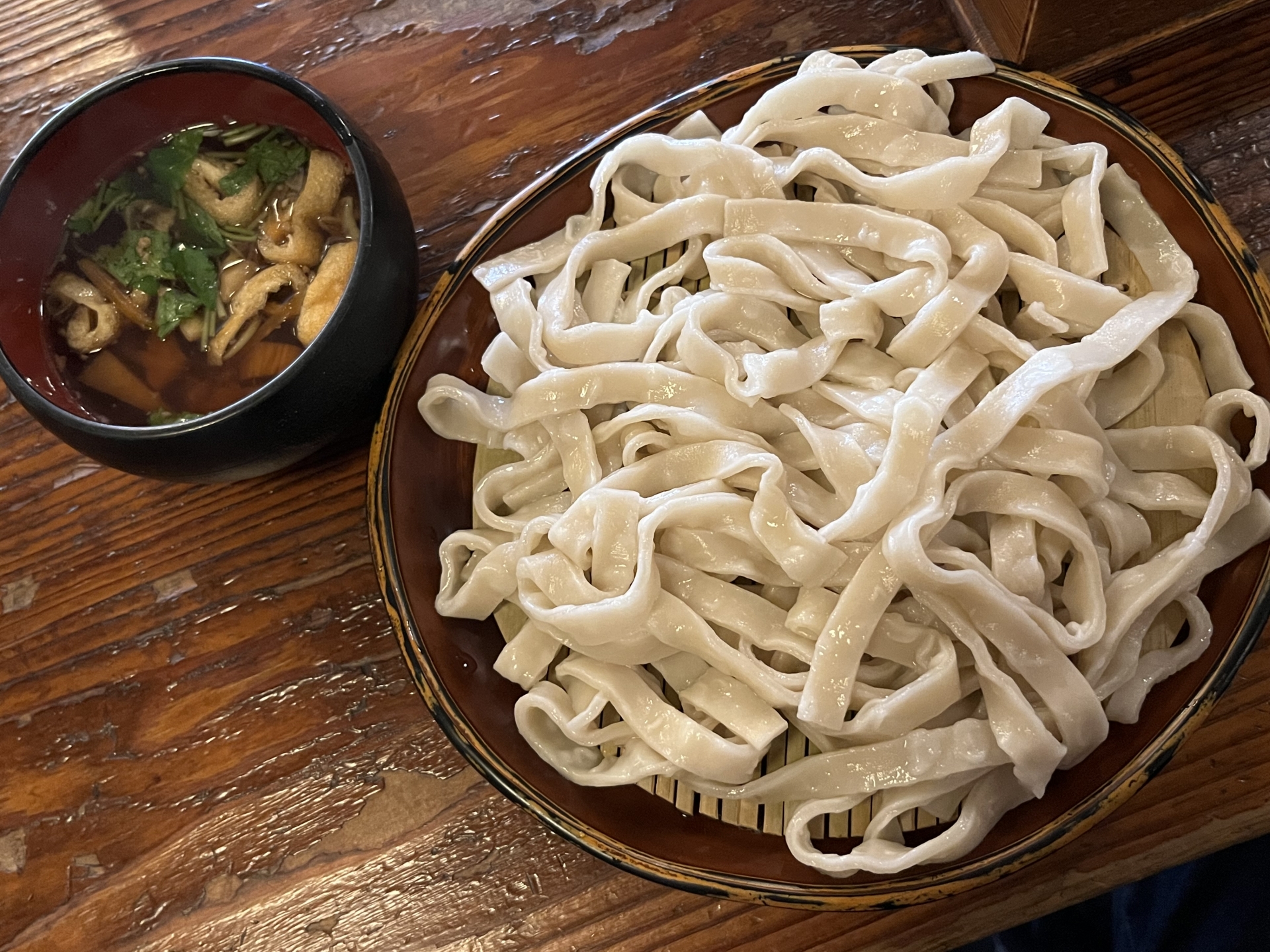 甲府駅南口近くの老舗「おざらとほうとうの店 ちよだ」は、冷たいほうとう「おざら」発祥の店として知られ、創業70年を誇ります。つるっとした喉越しの冷たい麺と、かつおだしが香る醤油ベースの温かいつけ汁が絶妙で、夏にぴったり。もちろん、定番の温かいほうとうも楽しめます。落ち着いた店内で、地元に愛される味をぜひ堪能してみてください。